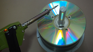 はんだごてで、CD、DVDに穴をあけて「溶かして」やるのです!
