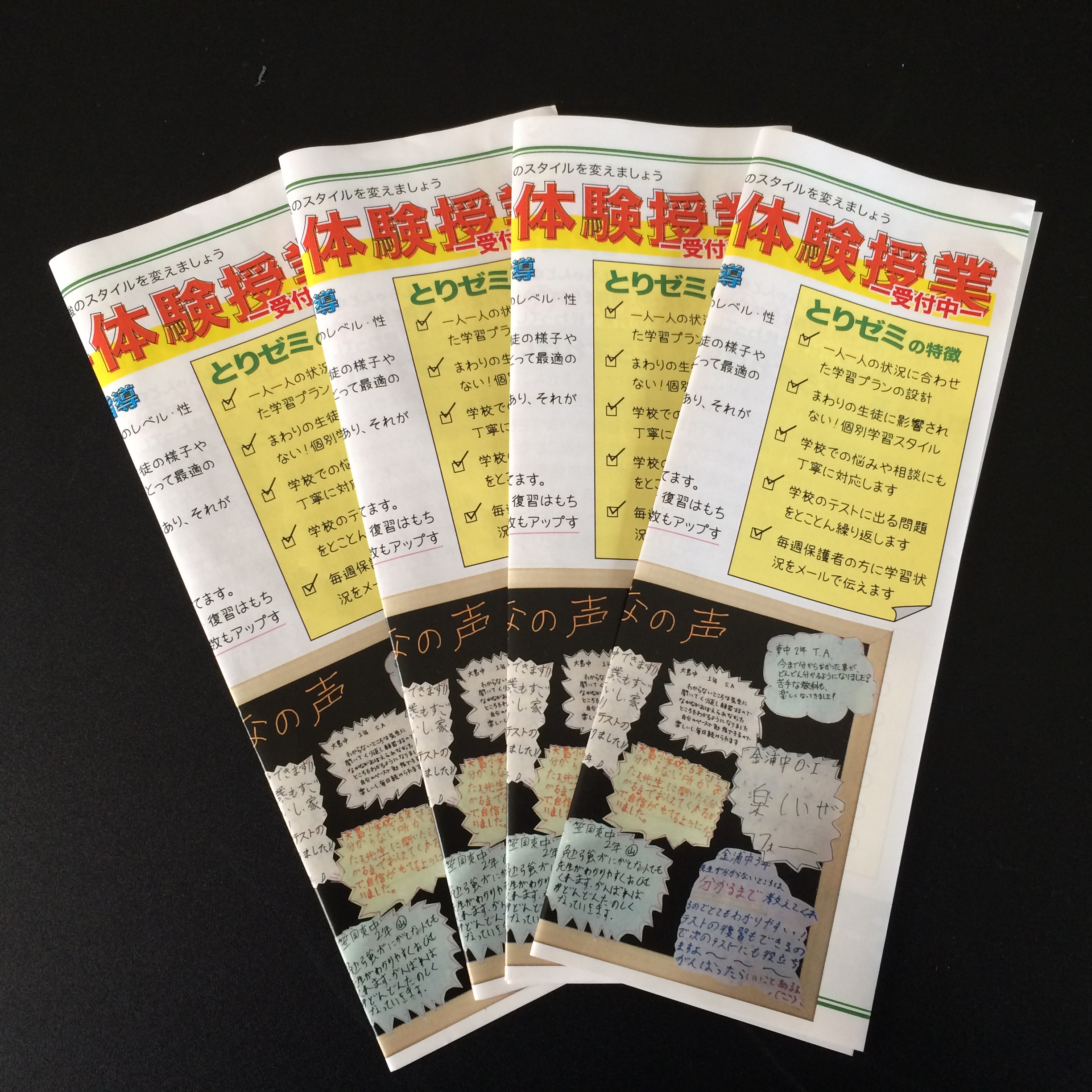 また、完全個別指導のとりゼミでは、一人一人の生徒さんの状況を把握しており、それぞれのレベルに合わせた問題を出題しているので、生徒さんは達成感を感じられるうえ、目標設定もしっかり行うのでどんなレベルの問題まで解く必要があるかも考えて取り組めます。