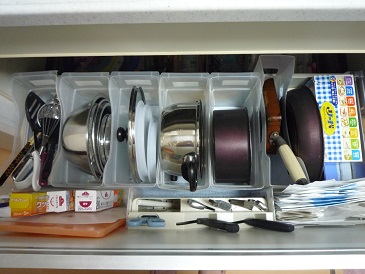 当初は、便利かも~って思っていたのですが、実際に使って見ると「フライパン」や「鍋」の出し入れに、縦に積み上げないといけないので、底にあるフライパンを取ろうと思うと、重ねているフライパンや鍋を除いてから取り出すことが必要なので、とても不便に感じていました。